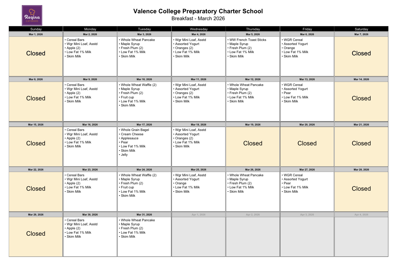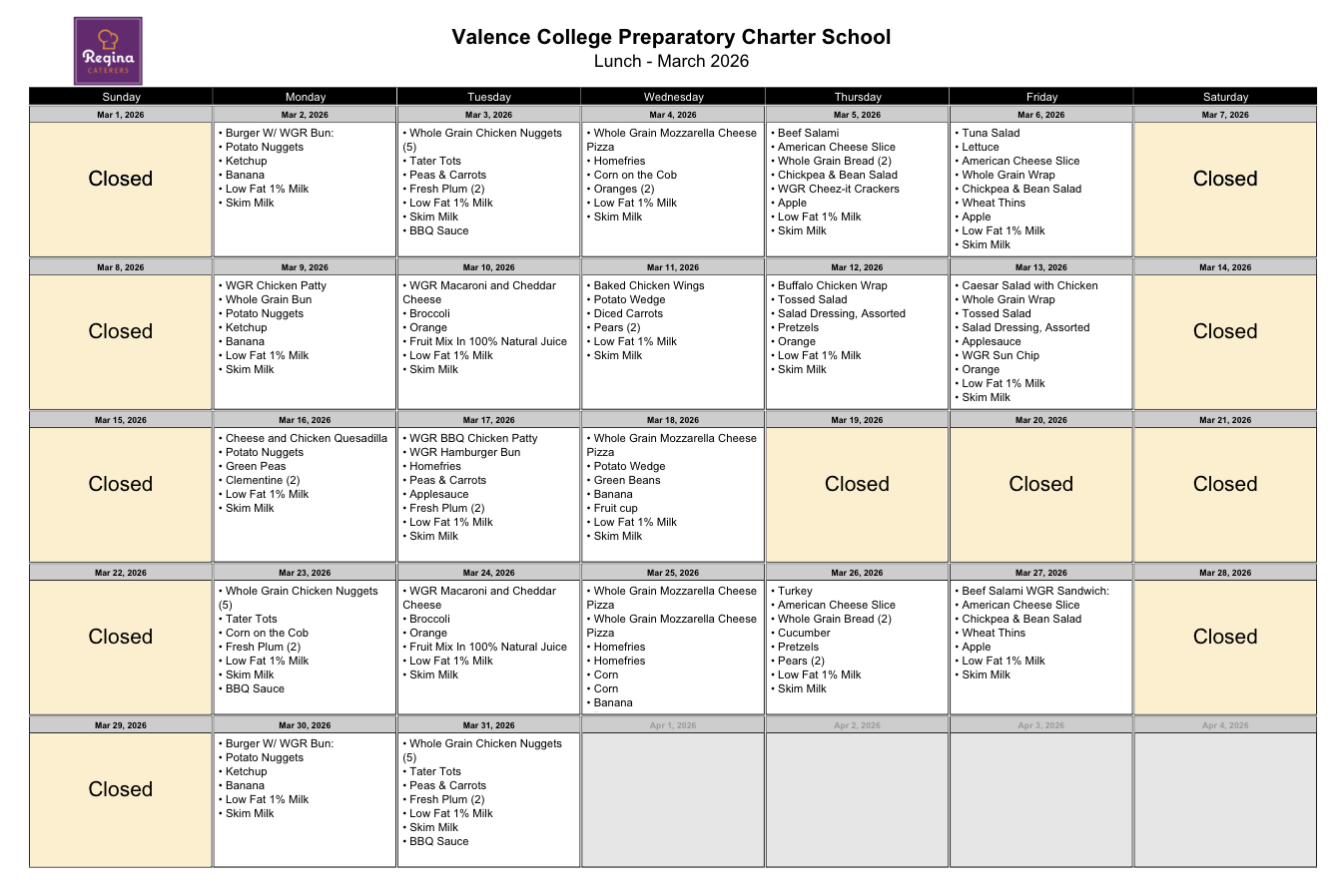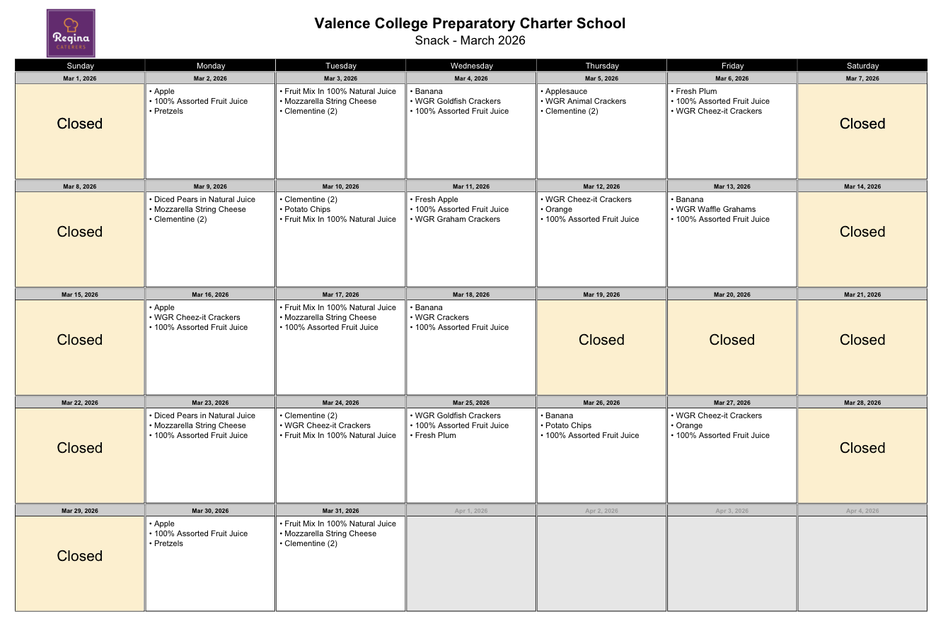 Please note: Snack is only available for scholars who are enrolled in a Valence after-school program.
